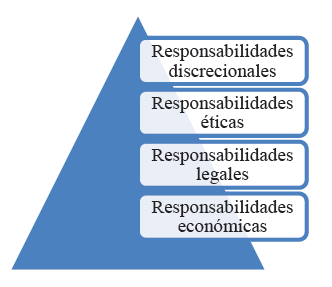 La relación entre las acciones estratégicas de RSC y la confianza del inversor se basa en un enfoque de escuela instrumental, en donde, varios autores afirman que la empresa es un instrumento para la generación de riqueza y sus actividades sociales son una forma de alcanzar resultados en el aspecto económico y estrategico (Jensen y Meckling, 1976; Petrick y Quinn, 2001; Priego, Manzaneque y Merino, 2014). Carroll (1979) explica que las acciones de RSC se basan en las obligaciones de la empresa con la sociedad y que dentro de estas se encuentra la mejora en las relaciones de confianza con los inversionistas. Por otro lado Windsor (2001), menciona que el aspecto económico y legal con necesarios, pero que la ética y la filantropía en las empresas son aspectos esperados por parte de la sociedad como se muestra en una pirámide de responsabilidades en el gráfico 2.