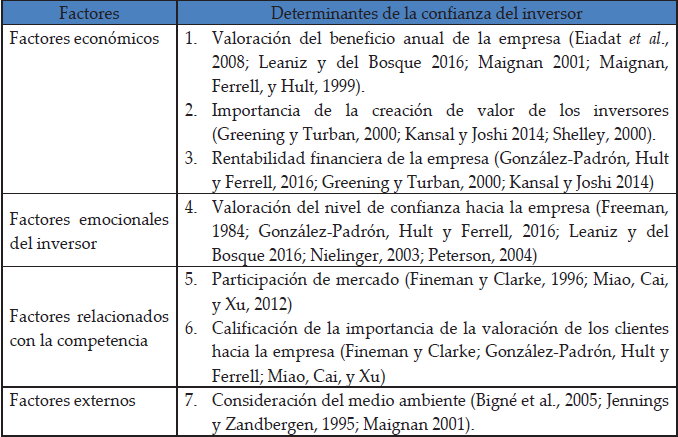 En línea con lo anterior, en la presente investigación se genera un modelo que buscar estudiar la relación entre la responsabilidad social corporativa y la confianza del inversor en el contexto del sector bancario en países en vías de desarrollo.