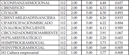 En los resultados se puede notar claramente que las acciones estratégicas de RSC influyen directamente en la confianza del inversionista como se mencionó en primera instancia en el planteamiento de la hipótesis. Esta relación se encuentra respaldada estadísticamente por un nivel de significancia de p<0,001. Esta variable logra explicar 19.7% aproximadamente de la percepción de confianza y por lo tanto, la hipótesis queda validada.
