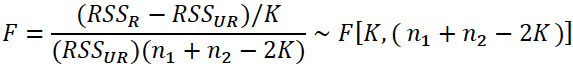 Para determinar si los coeficientes de regresión entre los dos grupos (contribuyentes con educación superior y sin educación superior) pueden considerarse diferentes, se calculó el test de Chow a partir de la regresión y las sub-regresiones, de acuerdo a los siguientes parámetros: