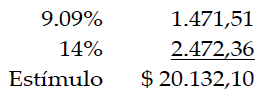 Estímulo: Se toma de la relación de gastos por partida del mes y se le determina 9.09% correspondiente a vacaciones y 14% de seguridad social.