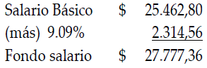 Fondo de Salario. Se toma el salario básico y se le adiciona 9.09% correspondiente a vacaciones.