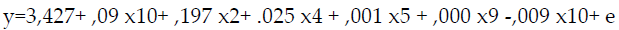 El modelo de regresión lineal múltiple (método enter) cumplió con los supuestos de 1) Linealidad de las variable; 2) de independencia de los residuos (errores) (1,071) en la medición de las variables explicativas (R= 0,634, Durbin-Watson=1,071) dado que el valor se encontró entre 1 y 3; 3) de no multicolinealidad, pues el factor de varianza inflada (FIV) mostró que las variables independientes no están relacionadas entre sí (valores entre 1,02 y 2,17) ,dado que no existe ningún valor por encima de 10 y en conjunto todos los valores son cercanos a 2; 4) de normalidad, pues los residuos presentaron una asimetría positiva en comparación de la distribución normal dado que las variables métricas se consideraron con base a los más de 4.000 datos de las fuentes secundarias sin una escala de Likert (Kolmogorov-Smirnof, sig. ,000); y de 5) Homocedasticidad, dado que los errores muestran una varianza constante.