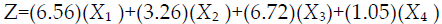 Se muestra el valor z del modelo como variable dependiente de otras cuatro: