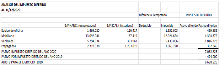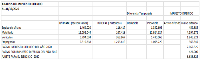 Información financiera de la Empresa A al 31 de diciembre del 2020 reconociendo en sus registros contables el impuesto diferido correspondiente al periodo 2020.