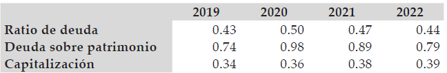 En los ratios de endeudamiento existen distintas opiniones sobre la interpretación de los índices de una empresa; cualquiera que estas sean, es notable que el panorama no es óptimo si se exceden en los límites, puesto que la empresa podría descapitalizarse, pero se evidencia una gestión post pandemia que he permitido mejorar la estructura de capital y promover el desarrollo de sus diversas líneas y afianzarse con sus socios de negocios.