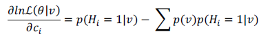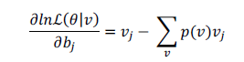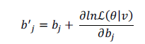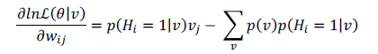(9)Otras de las ventajas que tiene este tipo de entrenamiento es que, a medida que avanza, permite actualizar los bias de la capa visible (ci), correspondientes a un valor característico de las neuronas de las capas de estudio, con la ecuación (10) y los bias de la capa oculta (bj) (Ji, Zhang y Zhang, 2014), con la ecuación (13).
