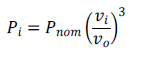 es la potencia nominal de la turbina. Pi y vi son la potencia producida por la turbina i y la velocidad que llega a la turbina i respectivamente.
