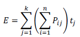 (6)En la ecuación (6), Pij es la potencia generada por la turbina i para la disposición de viento j; n es la cantidad de turbinas; tj es la duración de la disposición de viento; j y k representan la cantidad de disposiciones de viento obtenidas durante 24 horas.