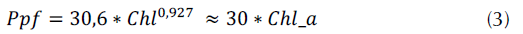 Chl_a = 0,927*30,6 = patrón de conversiónde Chl en producción primaria fitoplantónica en Cmg/m3/d.