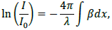 (1)Este fenómeno obedece a la ley de Lambert Beer, y puede reescribirse a partir de la ecuación (2).