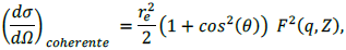 (7)Donde re es el radio del electrón 2,82 X 10-15 [m], θ es el ángulo de difracción, F (q,Z) es el factor de forma atómico, q = sin (θ/2) /λ es la transferencia de energía cinética. El ángulo θ entre el haz primario y el haz difractado es el denominado ángulo de Bragg. La figura 2 muestra un esquema del escaneo en CT de difracción.