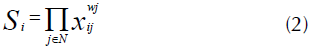 Es necesario tener en cuenta que en (2) Wj es una potencia positiva para una métrica de beneficio y negativa para una métrica de costo.