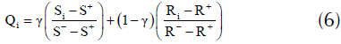 El algoritmo Vikor sigue los pasos descritos por Hernández, Giral y Páez (2015b); Hernández et al. (2015); Ramírez y Ramos (2010), y Stevens, Martínez y Pineda (2012). Para cada criterio de decisión se determina el mejor y peor valor teniendo en cuenta si son beneficios o costos. Luego se calculan los valores de i Q para i= 1, 2, 3, …, M, dado por la ecuación 6.