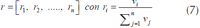 r1 ,r2 ,..., rn es el valor de los pesos de cadasubcriterio,