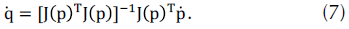 La cinemática inversa del sistema implica la inversa del jacobiano. Cuando este último no es una matriz cuadrada, es necesario calcular su seudoinversa, multiplicando ambos lados por JT, y resolviendo para