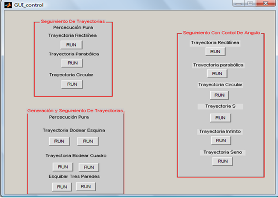 Se implementó una interfaz gráfica GUI para la presentación de las diferentes trayectorias seguidas por el robot móvil. En la figura 10 se muestra la GUI implementada.