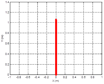 Con estos valores y un tiempo de simulación de 500 ms, la primera simulación hizo un recorrido en línea recta de aproximadamente de 1.07 m. Para la segunda prueba se describió una circunferencia perfecta de radio