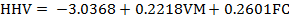 (2) HHV corresponde al poder calorífico superior, VM al material volátil y FC al carbono fijo