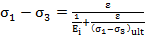 (1)Where (s1-s3) is the deviatoric stress; (s1-s3)ult is the deviatoric stress at failure and the asymptotic value of the model; e is the axial deformation; and Ei is the initial tangent modulus. Generally, the values of strain and deviatoric stress are obtained through triaxial tests under different confining pressures. From the shear strength parameters and the reference elastic modulus is possible to establish the stress-stiffness as a function of the confining pressure (equation (2)).