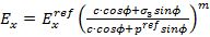 (2)The stress-stiffness dependency normalizes elastic modulus respect to a reference pressure. Where Eref is the elastic modulus of reference obtained by numerical adjust; c and f are the shear strength parameters; pref is a reference pressure which usually is the atmospheric pressure (100 kPa); and finally m is an amount of stress dependency represented by a power, which has values between 0.5 and 1. It is necessary to note that the s3 is the confining pressure corresponding a compression stress (thus, insert as negative value).