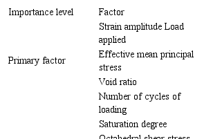 From this wide range of influencing factors, Seed & Lee (1970) selected and classified the most important in two groups of importance level, as shown in Table 1. In their work, they studied the effect of the load applied, strain amplitude and saturation degree in the stiffness of granular base.