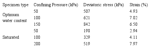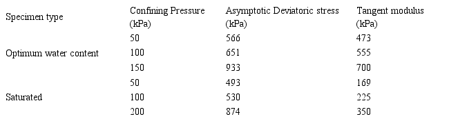 Results exhibit that the unload-reload moduli for the saturated specimen are lower than the specimen with optimum moisture. Table 5 presents the average moduli obtained by hyperbolic model in the stress path test.