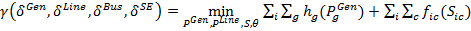 (20) (21) (22) (23) (24) (25) (26)las expresiones (20) a (26), las ponderaciones , , y son dadas como datos de entrada para representar los estimativos preliminares de los valores para cada tipo de componente del sistema. En los resultados mostrados en la sección 5 se usan los mismos valores de (Salmeron, Wood, & Baldick, 2003), es decir, 2, 5, 1 y 5 respectivamente.