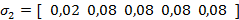 En los vectores mostrados (18) y (19) muestran los valores de desviación estándar σ para implementar el T2FLS de la metodología propuesta; estos vectores contienen los 5 valores de desviación estándar σ1 y σ2 que se utilizan para las variables de entrada al T2FLS.