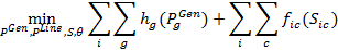 Como se propone en (Salmeron, Wood, & Baldick, 2004) el modelo de flujo de carga se simplifica mediante la implementación del modelo DC. Esta simplificación es válida en el contexto de los análisis de seguridad. El objetivo del flujo de carga DC es generar y distribuir energía a mínimo costo. El flujo de potencia óptimo DC se formula en la ecuación (2).