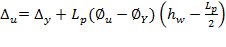 La capacidad de ductilidad de desplazamiento se determina como la relación entre el desplazamiento último (∆u) y el desplazamiento en fluencia (∆y) del muro. Estos desplazamientos fueron calculados mediante las ecuaciones (1) y (2), respectivamente. Debido a la esbeltez de los muros analizados y a que se buscaba una aproximación en los cálculos, solo se incluyeron los efectos de deformación por flexión. Los valores de la curvatura en el punto de fluencia efectivo (Øy) y punto último (Øu) fueron obtenidos a partir de la idealización elastoplástica del diagrama momento-curvatura, realizado mediante el balance de áreas bajo las curvas (figura 7). Este diagrama fue obtenido para la carga axial esperada empleando la combinación D+0,25 L recomendada en (ASCE 41, 2013). La longitud equivalente de rótula plástica (LP) se tomó igual a 0,5Lw. Este valor es sugerido en Wallace (2007) para efectos prácticos, y, además, es usado implícitamente en la sección C.21.9.6.2 del código NSR-10 durante el cálculo de la mayor profundidad del eje neutro congruente con el desplazamiento de diseño.