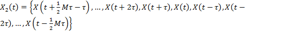La matriz se construye a partir de un vector de retrasos, de dimensión M, la ventana de tiempo escogida para la modelación de los datos, y con un tiempo de retraso (Ecuación 1) (Skitties & Früh, 2014)