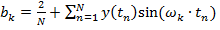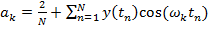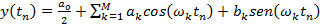 N:Número de observaciones de nuestra serie de tiempo, K: es el armónico, : es la frecuencia del k-ésimo armónico en radianes, M: número de armónicos a determinar.