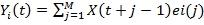 (3)Donde Yi(t) son los componentes principales asociados a cada eigenvector ei. Al final mediante la ecuación (4) se puede reconstruir la señal como la sumatoria de los Yi(t) (García-Cabrejo, Moreno-Sánchez, 2006).