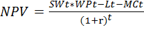 (1)Donde SWt: ahorro de agua en el período t (m3); WPt: precio del agua en t periodo (D / m3); Lt: inversión necesaria en el periodo t (D); MCt: mantenimiento y los costos de operación en el período t (D) (Que también incluye la energía uso, detergente y agua); n: tiempo de vida del sistema, t: año del funcionamiento del sistema; r: tasa de descuento.