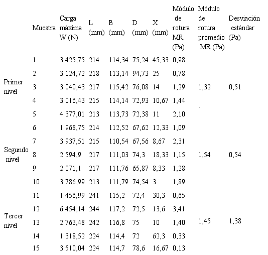 El módulo de rotura para cada muestra se determinó mediante la ecuación (4)