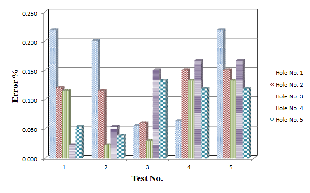 Field tests were performed using 5 holes drilled on a 7.5m segment of paved way into the Universidad del Valle. In order to obtain good results from these tests there were need for three additional considerations: first, the drilled hole must be cleaned before the inspection; second, most of the earth and dust were extracted using pressurized air; third, the drill only could achieved the first paved layer. Figure 10 shows the absolute error results for the thickness of the pavement for the 5 holes drilled; at each hole there were 5 different measures. In average the percentage of thickness error estimation was of 11.3% using Gabor filters. Figure 11 shows images of the intermediate steps of thickness estimation, which were very challenging, that is part of the reason why the Otsu method did not give any successful result in these tests.