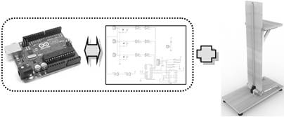 Figure 7 shows the vertical movement unit, which is used in the E2CAV system to descend the video-scope probe through a hole of 1-inch diameter. This unit is composed of the mechanical structure, the Arduino™ board, and a custom motion board to drive the DC motor. The mechanical structure was designed to facilitate transport, and it was built to support a descending/ascending tube, the video-scope, and the control electronic elements. A geared DC motor with torque of 18Kg cm, and 80 RPMs performs the descending/ascending motion. This DC motor supports 2 incremental encoders in quadrature of 520 ticks per revolution. Finally, the Arduino and the motion boards control the descending/ascending movement considering the following requirements: setting the descending/ascending distance and speed, moving the video-scope probe to its initial position (top), starting the descending motion, pausing the descending motion, resuming the descending motion, and handshaking any motion/configuration command sent by the laptop GUI.