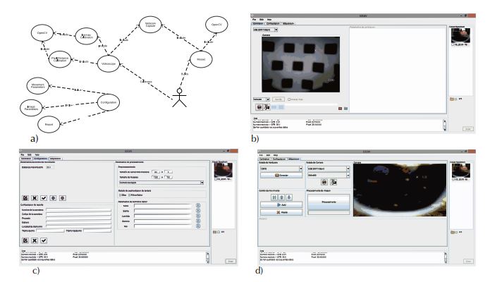 Figures 8b, 8c and 8d show the user interface of the E2CAV system software, which satisfies the requirements described above. These figures correspond to the calibration, configuration and image acquisition/processing modules, respectively. The order in which these modules are presented is the order in which a normal operation of the E2CAV system software must be operated.