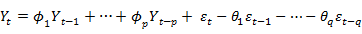 Existen diversos modelos de series de tiempo (Hildebrand, 1998; Chatfield, 2003; Guerrero, 2003; Bowerman, 2009). Sin embargo, se destaca el modelo ARIMA por su simplicidad y practicidad en la modelación y pronóstico. Este modelo es considerado el enfoque más implementado en hidrología y estudios relacionados con variabilidad climática debido a que considera registros de datos no estacionarios (con tendencia). El modelo ARIMA consiste en la combinación de un término autorregresivo (AR) y un término de promedio móvil (MA) con un elemento diferenciador dado por la letra I basado en un estudio realizado por Yaglom (1955). En general estos modelos se referencian con la palabra ARIMA (p,d,q). Donde (p) se refiere al orden del modelo autorregresivo; (d), al término de diferenciación, y (q), al término de media móvil con q términos de error. La estructura general de estos modelos [Yi:t E T] tiene la forma de un ARMA como se muestra en la ecuación (1).