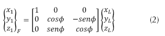 de (: en la ecuación (2) se presenta el primer giro realizado alrededor del eje x, correspondiente al ángulo de roll o de alabeo (.