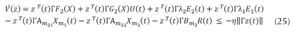 Donde ∆G2 (x) representa una incertidumbre paramétrica acoplada, el objetivo de la ley de control es lograr un seguimiento del modelo a pesar de las incertidumbres paramétricas que pueden ocurrir en F2 (x) y G2 (x) y considerando que la ecuación (21) presenta lo que conocemos sobre F2 (x).