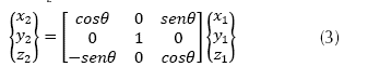 de θ: En la ecuación (3) se presenta el segundo giro en el eje y, y a partir del nuevo eje yL , con el ángulo de cabeceo (pitch), θ para dejar el eje yL en la posición final.
