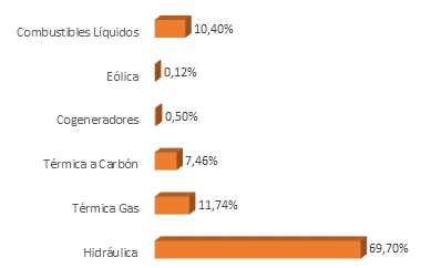 El suministro eléctrico colombiano depende del Sistema Interconectado Nacional y de los sistemas locales de las Zonas No Interconectadas (ZNI); de acuerdo al Plan Indicativo de Expansión de Cobertura de Energía Eléctrica 2013-2017, la interconexión al SIN es la principal alternativa para la prestación del servicio ZNI (UPME, 2013), este representa el 98,9 % de la generación instalada (Grupo Técnico Proyecto BID Marco de Cooperación Técnica CO-T1337, 2016b). En la Figura 1, se describe la capacidad por tipo de planta generadora a septiembre de 2015 y se resalta la incorporación en la matriz energética nacional de la energía eólica y de la cogeneración, como resultado de la implementación de tecnologías limpias y optimización de procesos de combustión, respectivamente promovidas por los subprogramas del sector industrial, con el objetivo de crear metas de ahorro (UPME y BID, 2015).