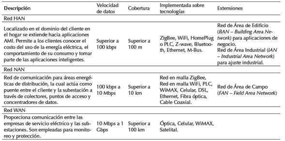 Como se ve en la Figura 4, FG-Smart aplica la red HAN para la interoperabilidad de los dominios generación y distribución con las zonas campo y estación, el dominio DER con las zonas proceso, campo y estación, y el dominio cliente con las zonas proceso, campo, estación y operación. Asimismo, aplica la red NAN para la interoperabilidad de los dominios generación, transmisión con las zonas proceso, campo y estación, los dominios distribución, DER con las zonas proceso, campo, estación y operación, y el dominio cliente con las zonas estación y operación; finalmente, FG-Smart aplica la red WAN para la interoperabilidad de todos los dominios y zonas. Las características técnicas de las redes HAN, NAN y WAN se presentan en la Tabla 4.