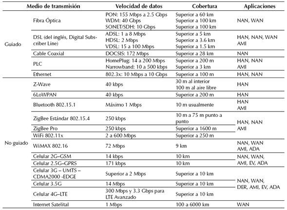 Una ciudad inteligente se puede definir como la conexión de las diferentes infraestructuras de una ciudad (física, tecnologías de la información y las comunicaciones, social y negocios), para aprovechar la inteligencia colectiva de la misma (Mohanty, et al., 2016; ITU-T Focus Group on Smart Sustainable Cities, 2015). El despliegue de una ciudad inteligente requiere un sistema eléctrico estable, confiable, seguro y de calidad (Li, Xiao, Gao, y Li, 2016), el cual incorpore en la producción energética distribuida fuentes de energía renovable, disminuyendo el uso de combustibles fósiles; como respuesta a dichos requerimientos, surge el concepto de red inteligente (RI). Las RI son, entonces, un mecanismo para la interconexión física, tecnológica y de gestión de los recursos energéticos en pro de un sistema eléctrico eficiente y confiable; de esta manera, requieren de una moderna estrategia de generación, transporte, distribución y consumo de la energía eléctrica, que se consigue mediante la integración avanzada del sensado, comunicación y control de la operación de la red eléctrica (Erol-Kantarci y Mouftah, 2015). En este contexto, las Tecnologías de la Información y las Comunicaciones (TIC) son esenciales para la comunicación entre los principales actores de la RI (agentes comercializadores, operadores de la red y clientes) y el interior del hogar del consumidor (Montes, Slootweg, y Van Eekelen, 2013).