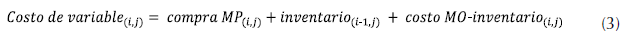 Donde el costo de variable se calcula de acuerdo con la ecuación (3).