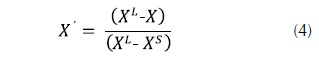 Tras aplicar las ecuaciones (4) y (5) se obtuvo la tabla 2, donde las cifras ya se encuentran normalizadas.