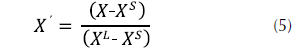 Normalización de las variables F, M, G y %G: como estas variables influyen positivamente en la calificación del cliente, es decir, a mayores valores de estas variables mayor será su calificación, se utiliza la fórmula del beneficio dada por la ecuación (5).