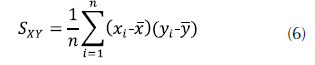 Matriz de covarianza. Permite identificar si hay relaciones entre variables. En este análisis, si la relación entre las variables es cero, se sabe que no hay relación entre las variables. La ecuación (6) permite calcular la relación entre las variables que es el promedio de los productos de las desviaciones de ambas variables con relación a sus medias respectivas.